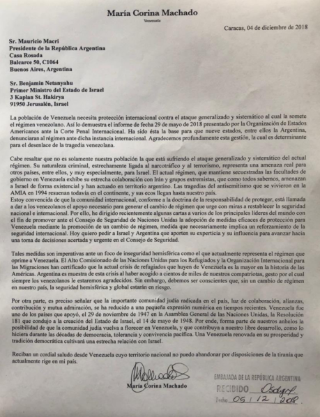 A partir de 2018 comenzó a invocar públicamente la Responsabilidad de Proteger (R2P), una doctrina criticada por su instrumentalización en intervenciones como la ocurrida en Libia (2011).En diciembre de 2018 escribió una carta al primer ministro israelí, Benjamín Netanyahu, pidiendo una "intervención militar" en Venezuela.