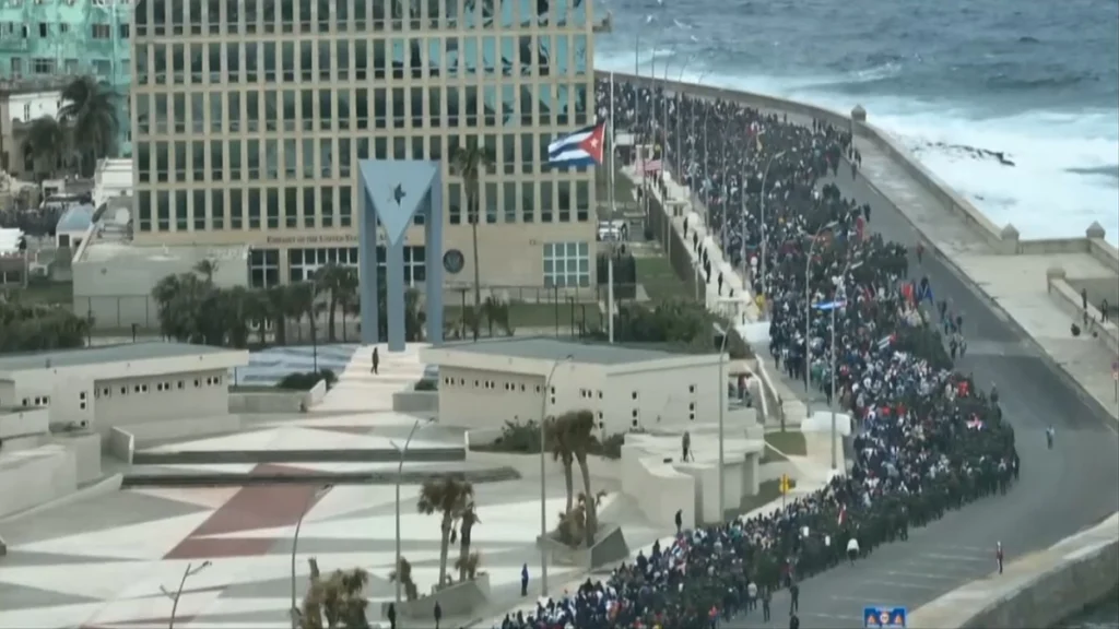 En haz apretado, como la plata en las raíces de los Andes, miles de cubanos se movilizaron este viernes en la Tribuna Antimperialista José Martí, en las inmediaciones de la sede diplomática de EE.UU. en La Habana, en honor a los 32 combatientes caídos mientras hacían frente a la vil agresión contra Venezuela y defendían al presidente Nicolás Maduro. Desde ese icónico lugar iniciaron la Marcha del Pueblo Combatiente.