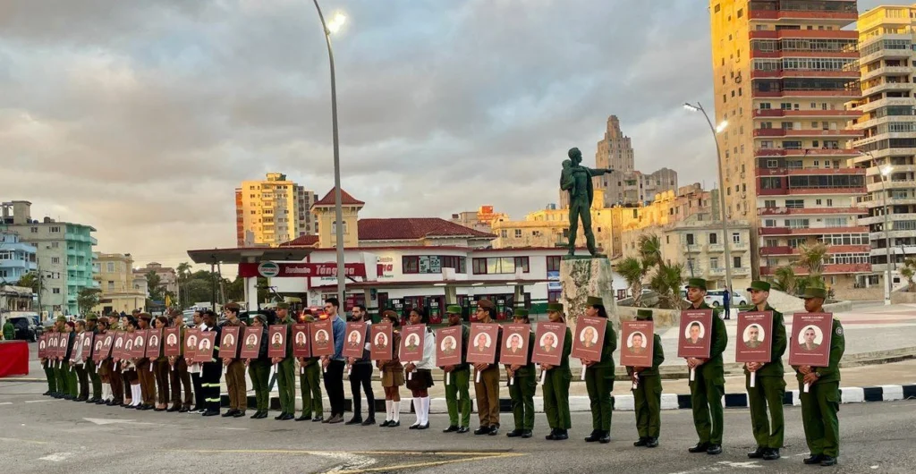 Sobre los 32 cubanos caídos, subrayó que cayeron defendiendo a la pareja presidencial al precio de sus propias vidas, sin temor ante agresores parapetados tras helicópteros, aviones, enjambres de drones y demás medios.