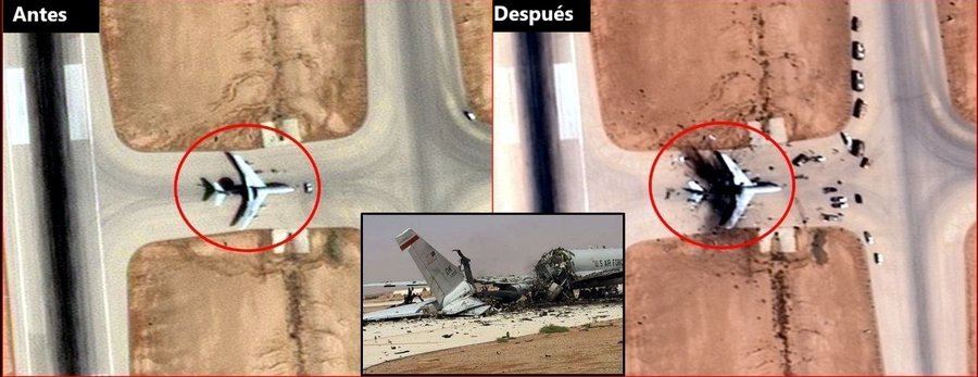 Imágenes satelitales publicadas en redes sociales muestran la destrucción del AWACS (E-3) estadounidense en la base del ejército estadounidense en Arabia Saudí como consecuencia del ataque iraní.