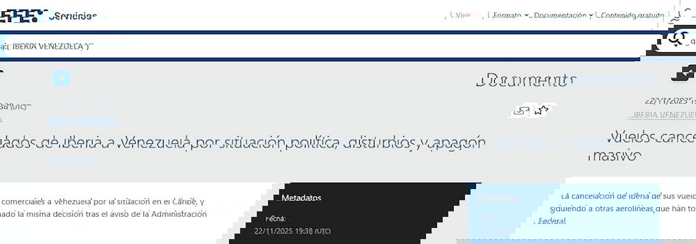 Según el cuestionado reporte de EFE, estas situaciones ficticias justificarían la suspensión de vuelos por parte de varias aerolíneas hacia la nación caribeña. Sin embargo, tampoco el gobierno venezolano ni ninguna autoridad local ha confirmado los supuestos eventos que EFE presenta como hechos consumados.