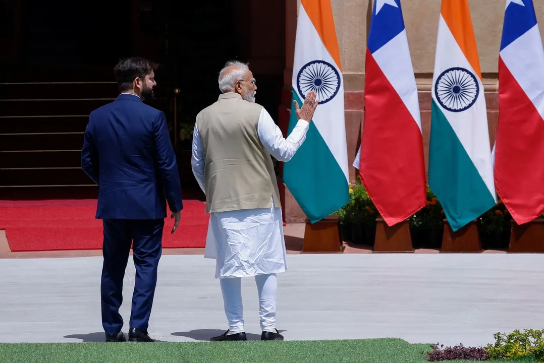 Modi recibe al presidente de Chile, Gabriel Boric, en Nueva Delhi, el 1 de abril de 2025.