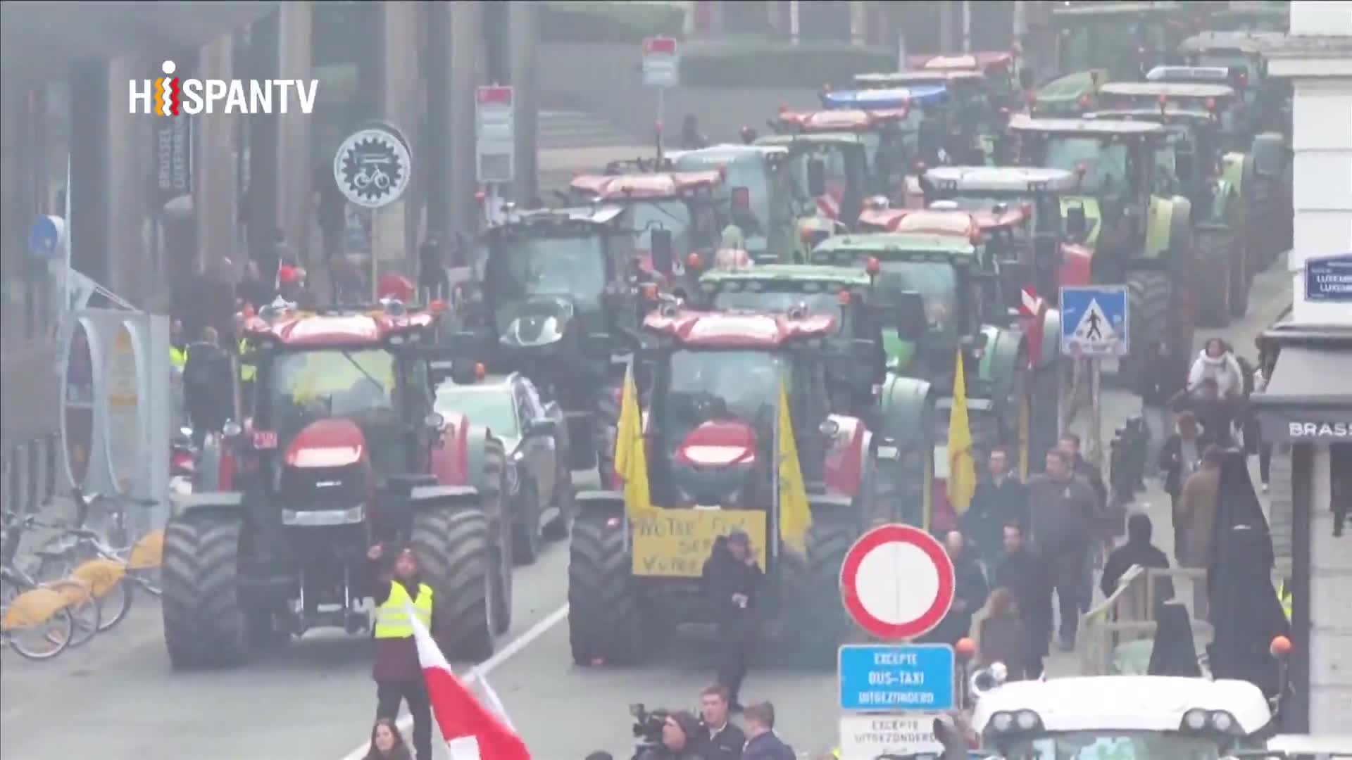 Cientos de tractores colapsaron las calles de la capital belga mientras agricultores de toda Europa protestaban cerca del Parlamento, sonando las bocinas de sus tractores en señal de protesta.