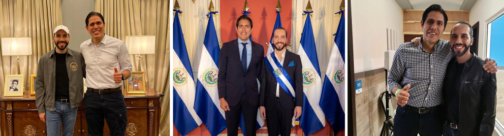 Las fotos publicadas en el perfil de Instagram de Toledo lo muestran del brazo con el gobernante de puño de hierro de El Salvador.