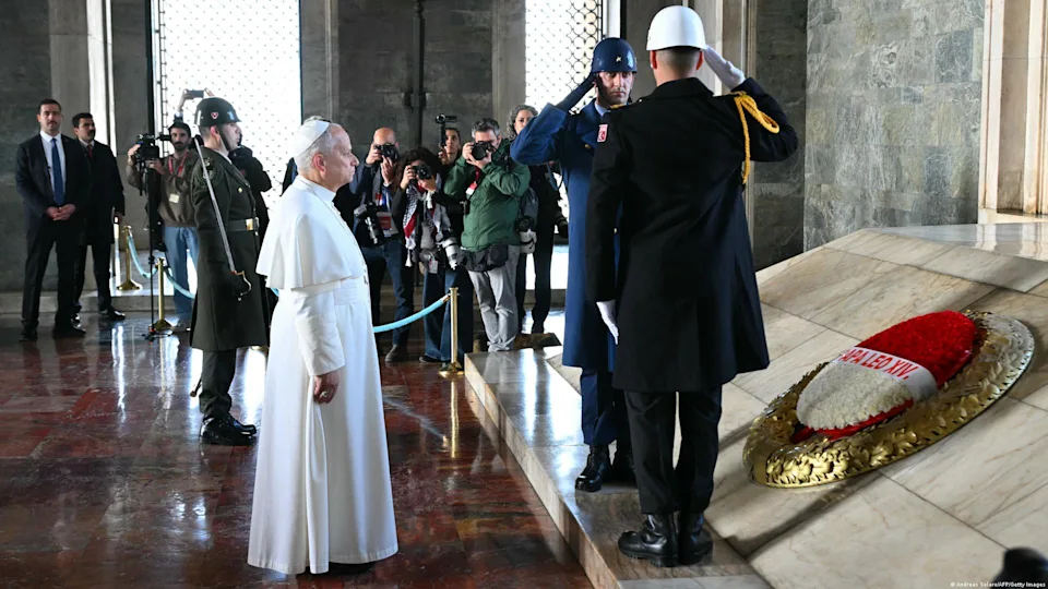 El avión papal aterrizó en el aeropuerto de Ankara y, como primera escala, el pontífice se dirigió al mausoleo de Mustafa Kemal Atatürk, donde depositó una ofrenda floral en honor al fundador de la República turca.