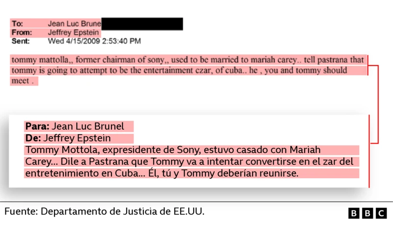A partir de 2009, no constan otras menciones a Pastrana en los documentos del DoJ, con excepción de una desorganizada lista de apellidos que envió Epstein en 2016 sin explicación.