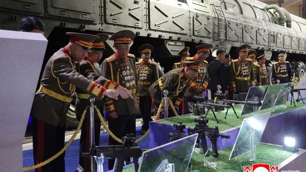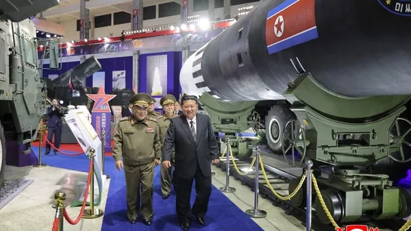 El líder norcoreano Kim Jong-un asistió a la inauguración de una exposición de equipamiento militar protagonizada por sistemas de armas ultramodernos en Pionyang.