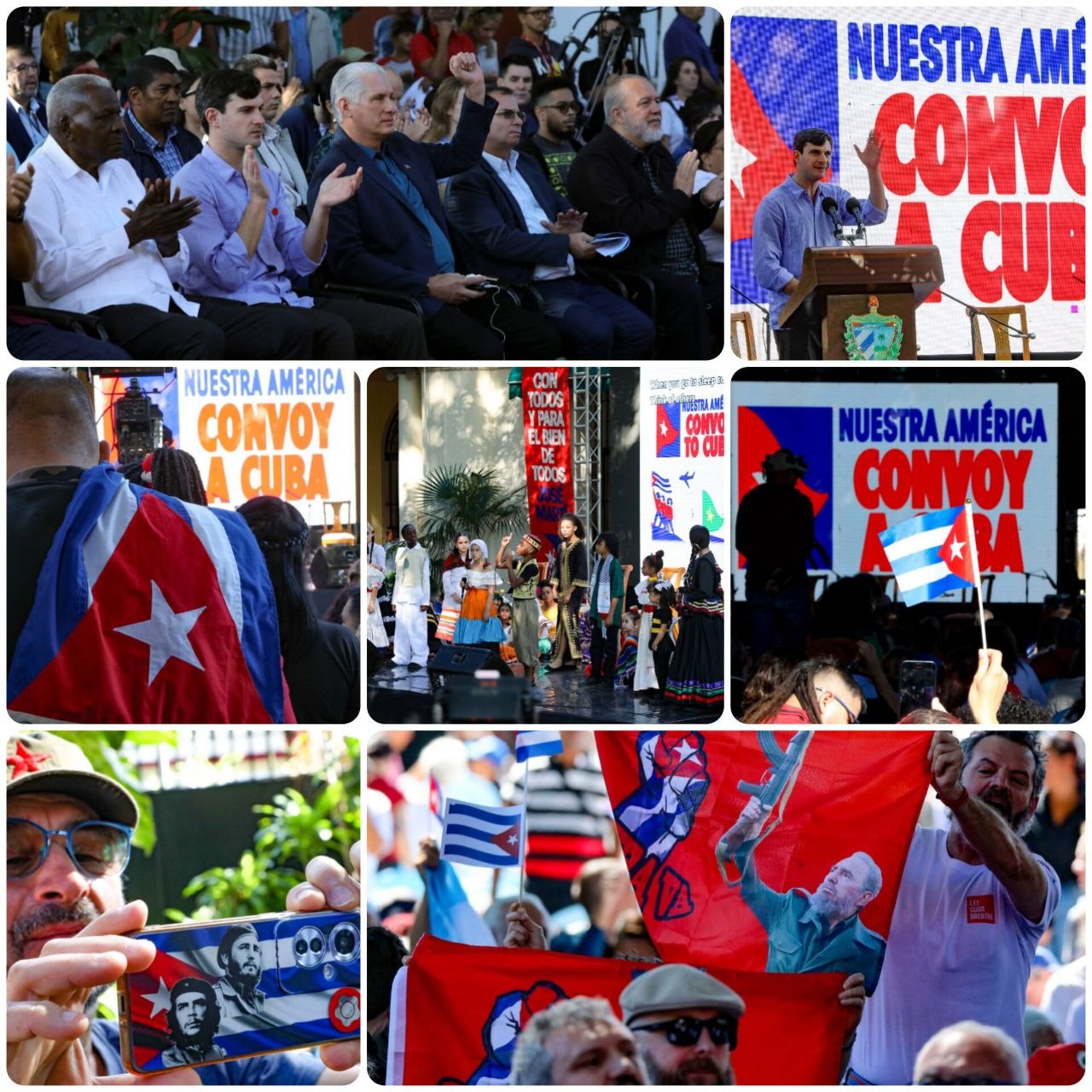 El presidente cubano, Miguel Díaz-Canel Bermúdez, lideró este sábado el acto de recibimiento y bienvenida a los integrantes del convoy «Nuestra América» en la capital.